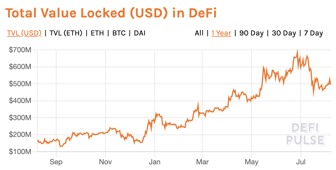 One of the major complaints of DeFi is that the systems require overcollateralization in order to get a loan. Who would want to lock up so much capital? The argument is that it is a highly inefficient use of capital and many people do not have the extra funds in the first place. However, there is already $500M locked up in DeFi which shows there is demand for using this.